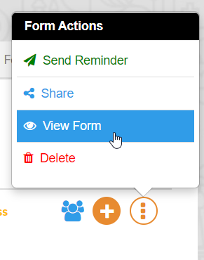 - Step 2 - Locate the form you would like to view and click the three-dotted icon to open the Form Actions menu. Click ‘View Form’ to view the form.