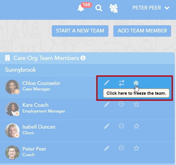 Clicking the snowflake icon will ask if you are sure you would like to freeze the team.