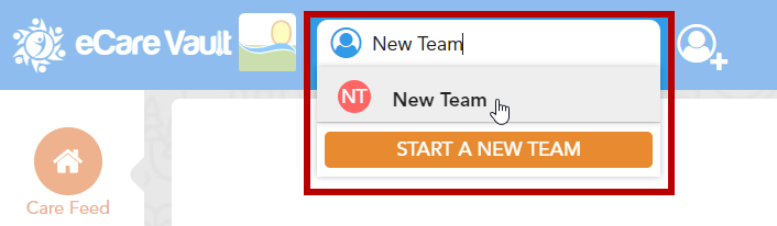 Next, enter the new Team Member's email address into the 'Email Address' entry field. If the new member is already an eCare Vault user, their email will appear in a selection menu below the entry field. You may select their email from this menu or type it in manually. If an email is selected, their name will automatically be filled in to the 'Name' entry field.