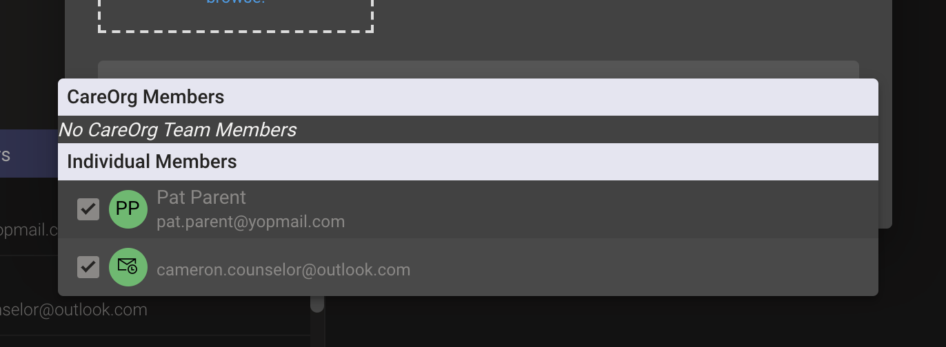 When the names of your team members appear, select Team Members who should receive access to the document.