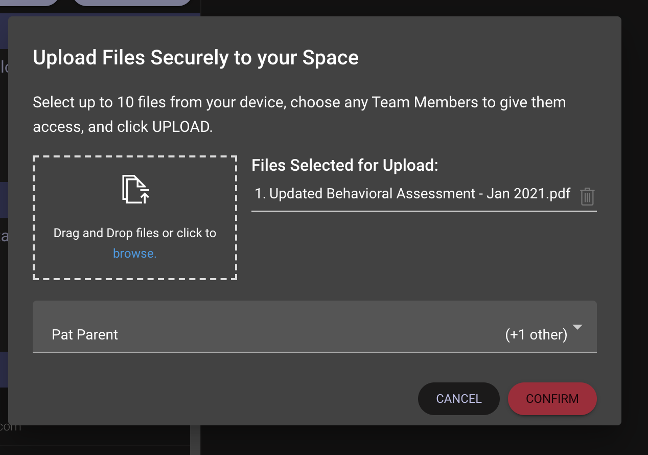 Please Note: You have the ability to skip the following step, and simply upload a document into Safe Spaces without sharing with anyone else.