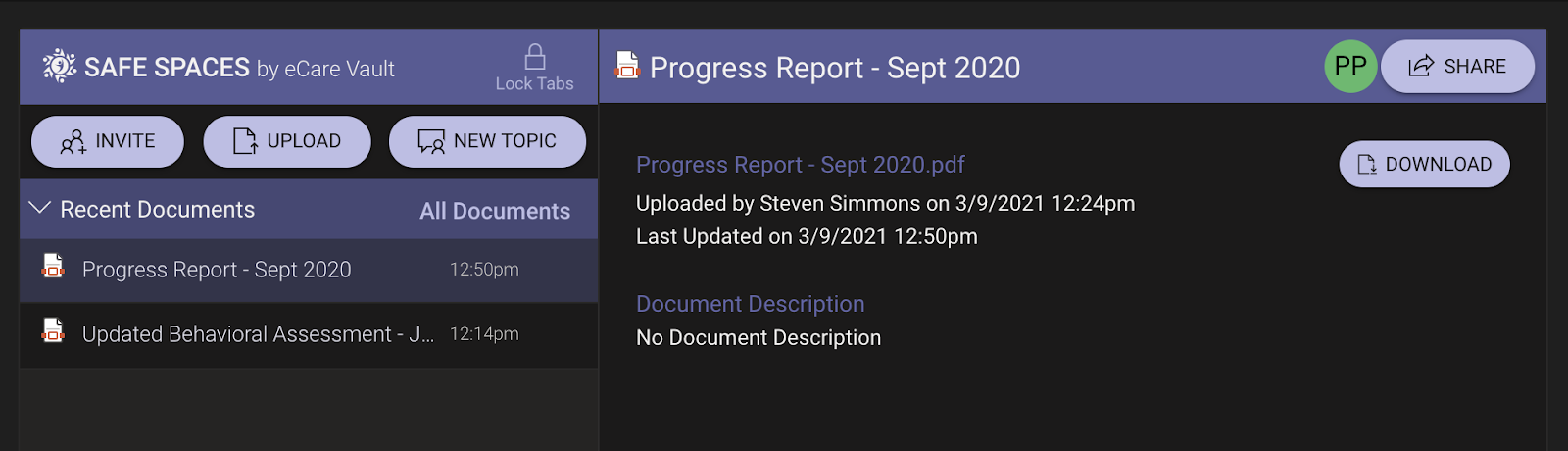 New Documents are uploaded and shared with the Team by external members