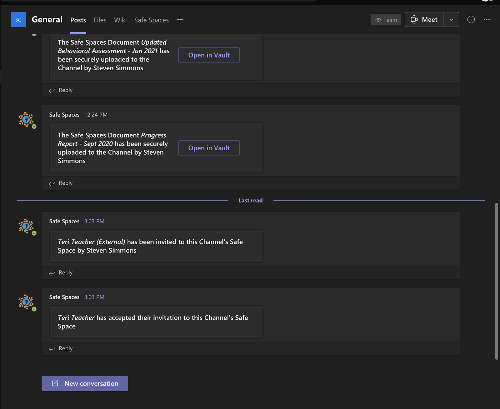 New comments are added to an existing discussion in Safe Spaces